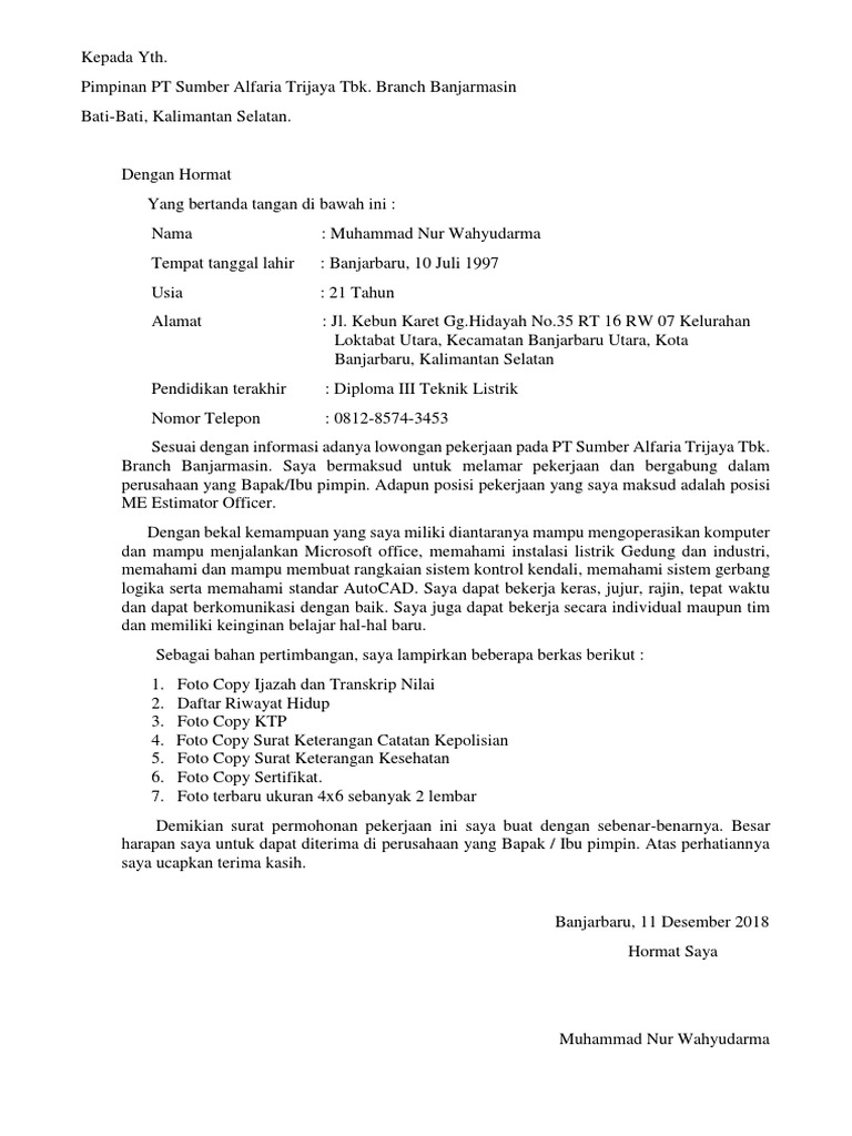 Apalagi bila anda sudah berkeluarga dan anda adalah seorang suami. Namun demikian, tetap saja surat lamaran kerja tulis tangan memberikan nilai lebih dan menjadi daya tarik sebagian besar hrd atau tim kemudian, untuk membuatnya perhatikan dengan benar garis tipis dan lihatlah dengan teliti contoh surat lamaran kerja tulis tangan pada gambar berikut ini Untuk umum, tulis tangan, di pabrik, di pt sebagai karyawan yang baik dan benar. Contoh surat lamaran kerja umum, bank, karyawan, alfamart, pt, sekolahan, formal, fresh graduate, bahasa inggris, via email, tulis tangan secara umum dibikin dengan dokumen ketik yang di print, tapi kadang ada permintaan khusus misal harus tulis tangan atau gunakan bahasa. Mengingat pentingnya surat lamaran kerja sebagai bahan pertimbangan diterima atau tidaknya kita sebagai karyawan di tempat kerja tersebut maka surat.